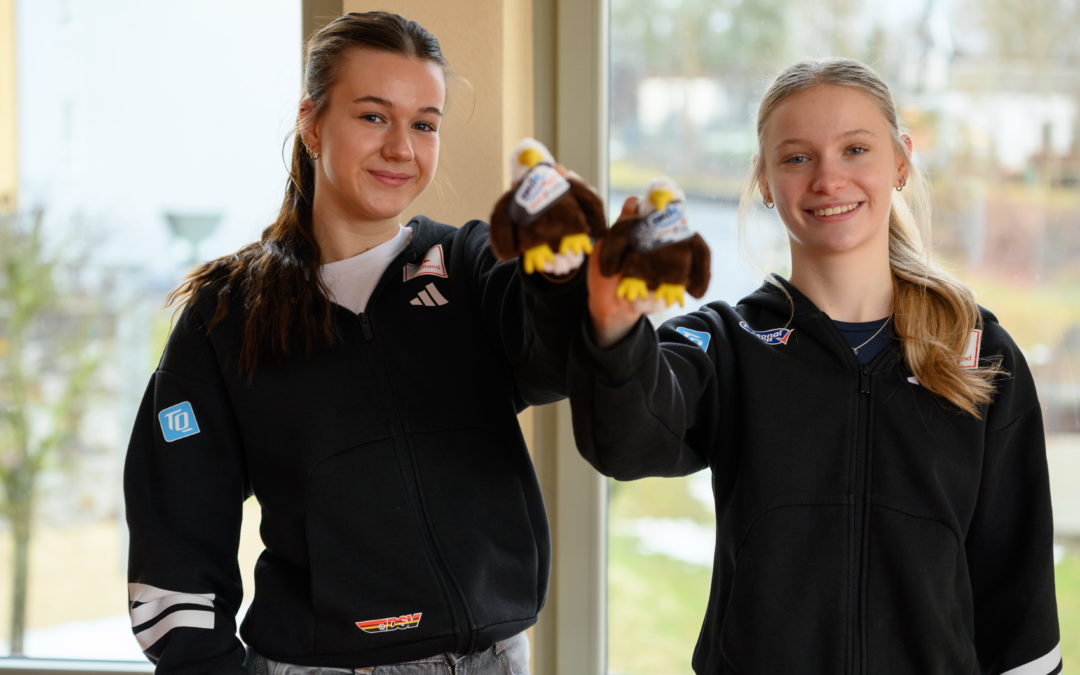 Klingenthal. Der VSC Klingenthal e.V., der Sportcampus, das Skiinternat und die Stadt Klingenthal haben am Dienstag die Skisprung-Athletinnen Julina Kreibich und Megi Lou Schmidt offiziell zur Juniorenweltmeisterschaft nach Lillehammer verabschiedet. Als besonderes Zeichen der Verbundenheit, erhielten die beiden Sportlerinnen einen kleinen Glücksbringer mit auf den Weg. „Skampi“, ein kleiner Weißkopfseeadler, verkörpert den Campus und das Internat. Insgesamt fahren fünf Athletinnen und Athleten aus Klingenthal zur JWM nach Norwegen. Neben den beiden Skispringerinnen sind auch Maja Loh in der Nordischen Kombination sowie Charlotte Böhme und Janik Weidlich im Skilanglauf vertreten. Alle drei starten für den VSC Klingenthal e.V. und befinden sich bereits in der unmittelbaren Wettkampfvorbereitung. Deshalb konnten sie an der Verabschiedung nicht persönlich teilnehmen. „Wir sind stolz auch in diesem Jahr wieder starke Athletinnen und Athleten zur JWM schicken zu können. Dass es gleich fünf sind, zeigt dass unser Konzept, bestehend aus Vereinsarbeit, Integration des Sports im Schulalltag am Campus und den vielseitigen Angeboten des Skiinternats, vollends aufgeht.“, so der Geschäftsführer des VSC Klingenthal e.V., Alexander Ziron. Für Julina Kreibich und Megi Lou Schmidt ging es am Dienstag nach der Verabschiedung direkt in die JWM-Vorbereitung. Am Sonntag steht dann die Reise nach Norwegen an. |